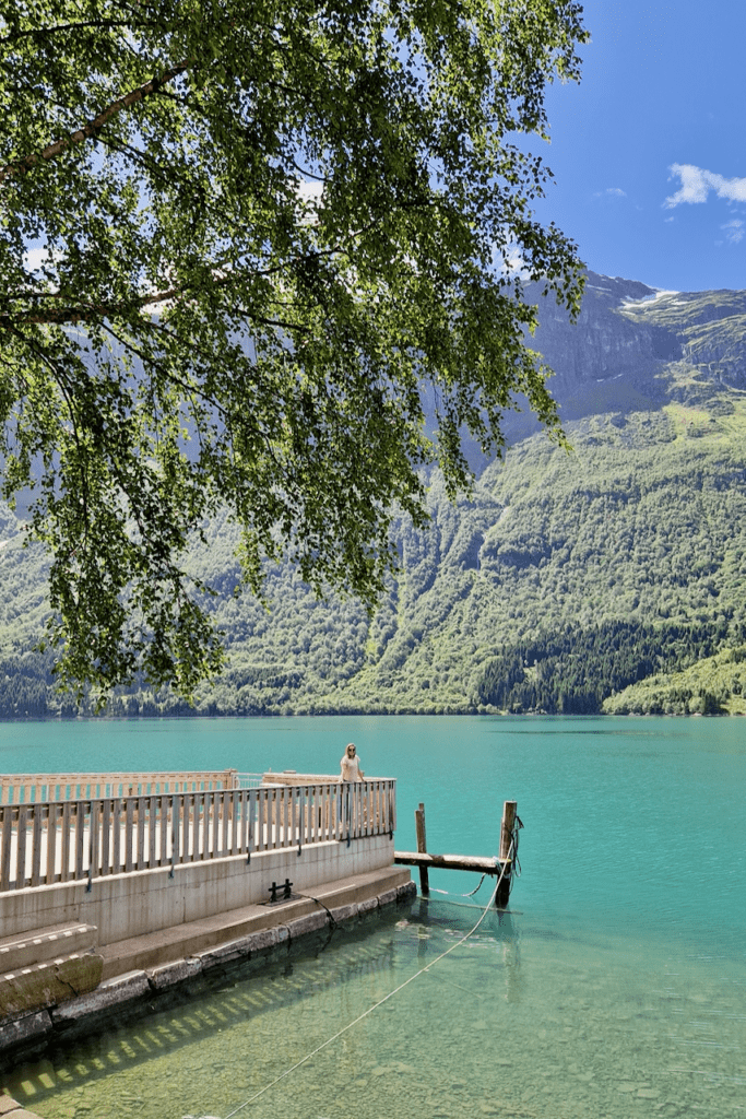 Bei Loen liegt der Lovatnet See, einer der schönsten Seen Norwegens. Das kristallklare, türkisblaue Wasser ist von hohen Bergen umgeben und ein absolutes Highlight auf deiner Norwegen Rundreise! Das Gletscherwasser transportiert feines Gesteinsmehl, das dem See seine charakteristische Farbe verleiht und ihn besonders fotogen macht.